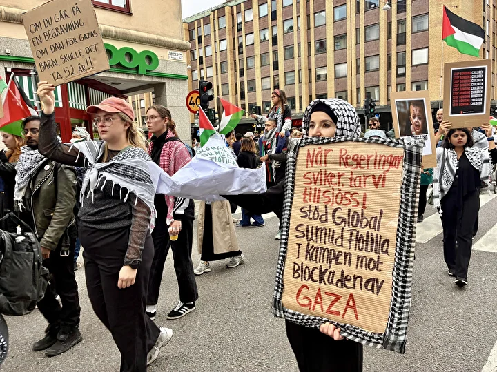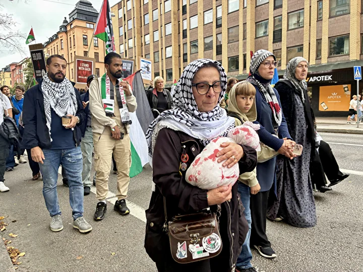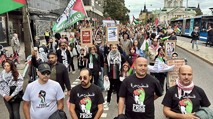 Çok sayıda sivil toplum kuruluşunun çağrısıyla Odenplan Meydanı’nda toplanan yüzlerce kişi, İsrail’e silah ambargosu uygulanması, İsrailli şirketlerin boykot edilmesi ve İsrail ile tüm ilişkilerin kesilmesini istedi.